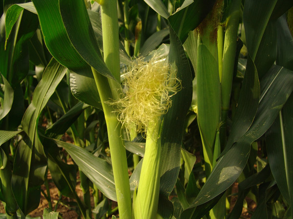 〈3〉栽培技术要点:适宜播期为6月中下旬,适宜密度为4500株/亩左右。播种时亩施种肥15千克,12~13片可见叶时亩追施尿素40千克。如遇干旱,播前必须灌水造墒,确保一播全苗。如人工播种,5叶期及时定苗。苗期可采取控水蹲苗的措施,开花灌浆期是玉米水肥临界期,必须保障水分充足。注意防治玉米螟、瘤黑粉病。
